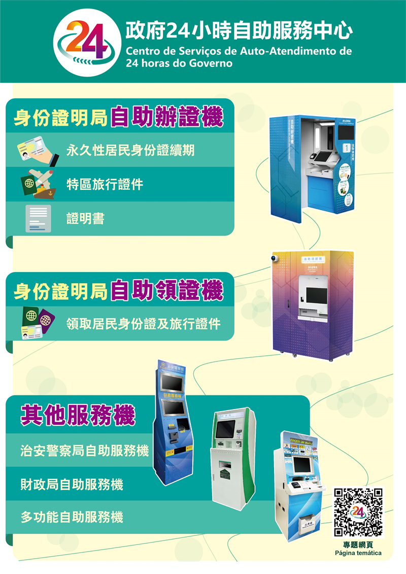 政府24小時自助服務中心詳情,可參閱專題網頁www.dsi.gov.mo/eservice/。