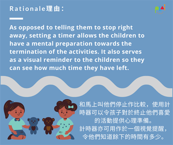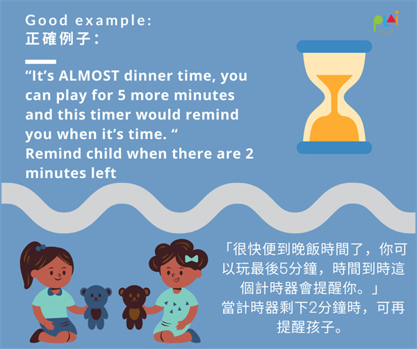 有些孩子有時在轉換活動時有困難,尤其是當他們正進行非常喜歡的活動時。當要求你的孩子進行下一項活動時,試試這個技巧!