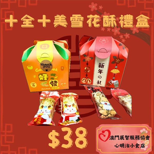 心明治小食店今年除了推出賀年糕點外,今次加推了兩款精美賀年小禮盒,包括大吉大利曲奇禮盒和十全十美雪花酥禮盒。大家的支持有助學員更好地提升工作技能,數量有限,欲購從速!!!