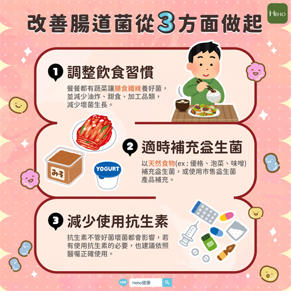 腸道中的微生物受多種因素影響,包括年齡、飲食、環境、藥物和壓力等。菌群失衡不僅影響消化,也可能增加罹患其他疾病的風險。營養師建議從三個方向調整 :