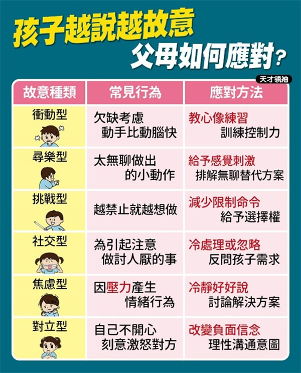 為何孩子會有故意行為?其原因大概可以分為6類: