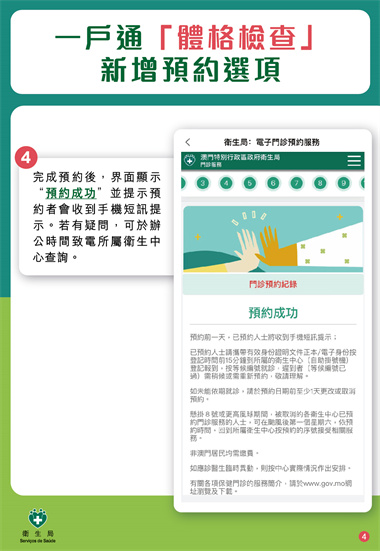 為推動智慧醫療發展,向居民提供更便捷醫療服務,3月28日起衛生中心網上預約體格檢查服務新增4個項目,具體如下: