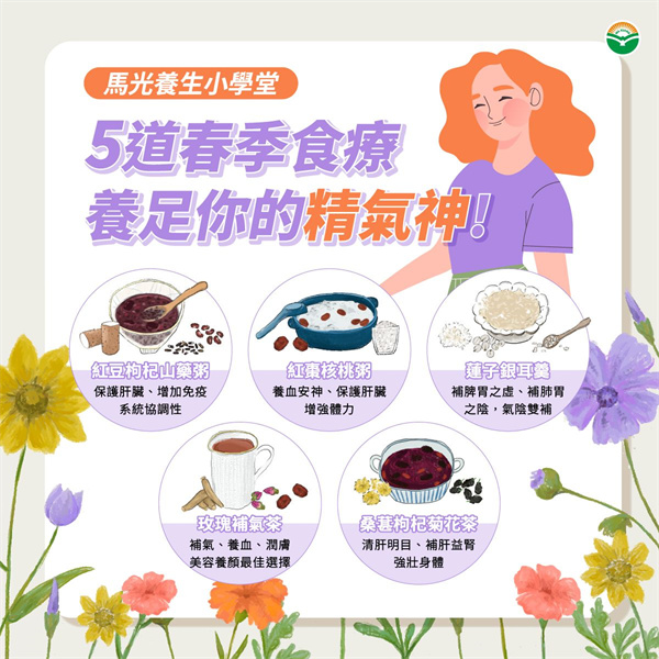 而春季肝氣升發正旺,脾胃功能稍弱者,常易在春天感到不適,故春季食療除養肝外,更可進補甘味食物,補養脾胃,以益脾胃之氣運行。以下介紹春季可準備的藥膳及花草茶飲: