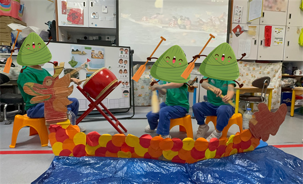 課堂中老師首先介紹端午節的由來以及相關傳統習俗,賽龍舟是最具代表性的習俗活動之一,在老師帶領下學生嘗試拿起船槳體驗龍舟“破水"而出的震撼,在旁邊觀眾的口號及鼓聲下,表現出團隊合作的力量。另外,課堂中亦向學生介紹粽子的做法並嚐試不同口味的粽子,每名學生均吃得津津有味。期望透學生的親身體驗,讓端午節不僅僅是一個節日符號,更成為了學生們心中的文化記憶。