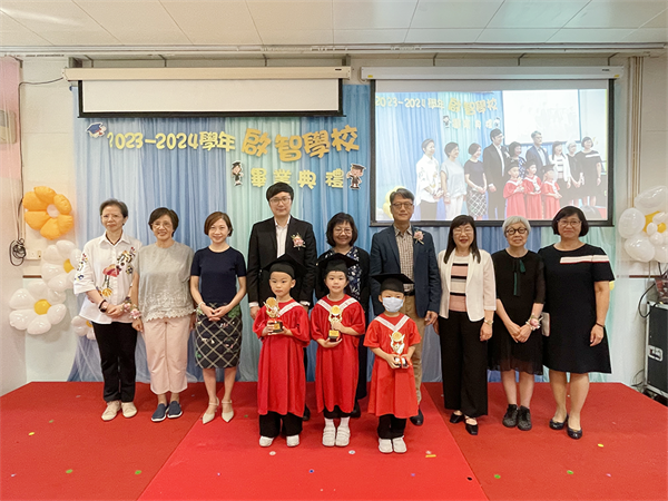 啟智學校於日前舉行“二三至二四學年畢業典禮”,本年度共有四十四名畢學生畢業。是次畢業禮邀得社會工作局康復服務處余家偉處長、教育及青年發展局教育心理輔導及特殊教育中心周佩玲主任、澳門展智服務協會監事會杜琪新監事長、澳門展智服務協會副會長及啟智學校校董會關燕芬理事,澳門展智服務協會常務副會長馬騰等嘉賓出席。 啟智學校校董會關燕芬理事於致辭中表示澳門展智服務協會一直非常重視幼兒教育,希望能在孩童黃金時間積極培養發掘孩子內在潛能及創造力、訓練各方面的能力。最後期望畢業生們踏入新學習階段後能盡快適應及融入新的校園生活,並會成為畢業生與家長們背後強大的後盾。 高慧嫻校長於致辭時表示,學校一直透過多元化的活動、系統化的課程、日常流程及專業團隊協助學生全面發展,讓孩子學習成長、建立自我照顧能力、認知自己、認識社會和探索世界。同時亦透過親子活動及家長分享會提昇家庭成長關係及增加家長們育兒的信心。而23/24學年是復常的一年,繼續疫情改變了很多,但「家長對子女的愛」卻恆久不變,同時感謝家長們一直對學校的支持。「啟智學校陪你同行」並非口號,學校與家長的關係一直都會是夥伴的關係,並不會因孩子畢業而結束,有需要可以隨時與學校聯絡,並鼓勵家長要好好愛借自己、學習放輕鬆,成為孩子最強的後盾。最後高校長祝福各位畢業生在其他學校裡都可以健康快樂地成長,並祝各位嘉賓、同事、家長身體健康。 而教育及青年發展局教育心理輔導及特殊教育中心周佩玲主任於致辭時表示孩子的教育部分固然重要,但「家長」在整個15年免費教育中亦不容忽視。本年畢業生是新冠疫情的第一年入學,戴著口罩的這三年並不容易,經歷著不停的停學與復課,感謝家長們的付出。而進入小學階段後,學生在學習上的要求與就讀幼稚園時並不一樣,於功課及恆常學習活動更需要家長的參與,尤其是有特殊教育需求的學生。而得知啟智學校本年將有三分一的學生入讀普通學校,期望家長們透過參與學生的個別化教學計劃的訂定讓學校了解學生的優勢與善長,提升家校合作,把孩子的天賦與才能能發揮出來。最後周主任表示期望教青局能與家長一起攜手同行,有需要可以隨時與教青局聯絡並尋求協助。 嘉賓致辭後分別向畢業學生頒授畢業證書與各獎項,包括賀雙慶親子設計概念比賽獎和學生品德優良獎,並向家長義工及最踴躍參與的家長頒發獎項,感謝義工們對學校的協助及對活動的參與。畢業典禮尾聲,舞台播放出學生和家長的親子片段,畢業生手持花束進場向家長表達愛意,以溫馨的擁抱結束整場畢業禮。