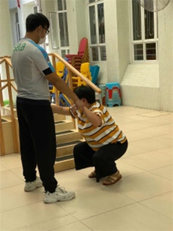 啟康中心常規課程肌能訓練以大肌肉和精細動作的訓練為主,由於每位服務對象能力不一,訓練也會針對他們個別程度調整。