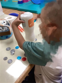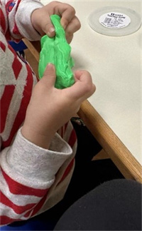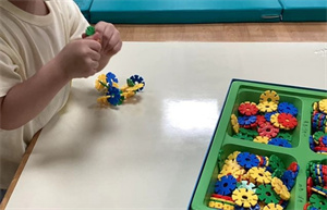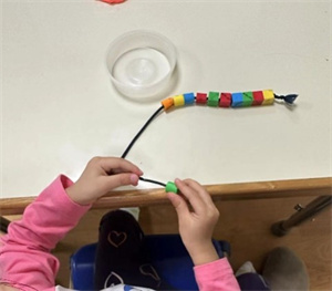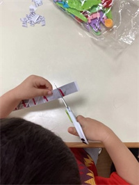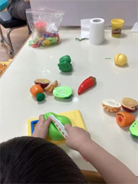 一手固定物件,另一手操作物件: 隨著兒童的手部動作發展,可以操控的玩具或工具也變得越來越多,開始可以執行更複雜的雙手活動。一手輔助固定,協助另一手做動作(如:旋開美勞用具的瓶蓋、撕紙、切東西等)。