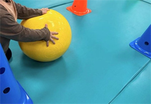 1-2歲的兒童身體整體力量變得更強,可以開始較難的動作,如雙手推大皮球,雙手拉開泥膠等。