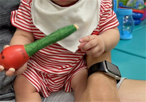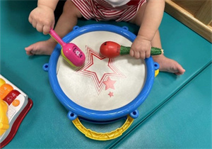 雙手做同一動作:6-12個月的兒童,雙手同時拿起兩件物件,訓練時可以在兒童面前放置一小樂器,讓兒童分別一手拿一根棒,敲打發出聲響。
