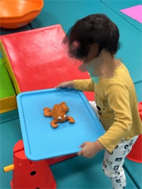雙手接觸:訓練目標主要為初生的兒童,3個月時,通過一些洋娃娃,聲光玩具去吸引兒童雙手接觸玩具後放在胸前,在4-5個月時,兒童可以雙手把玩玩具,奶瓶等日常生活常接觸的物品。
