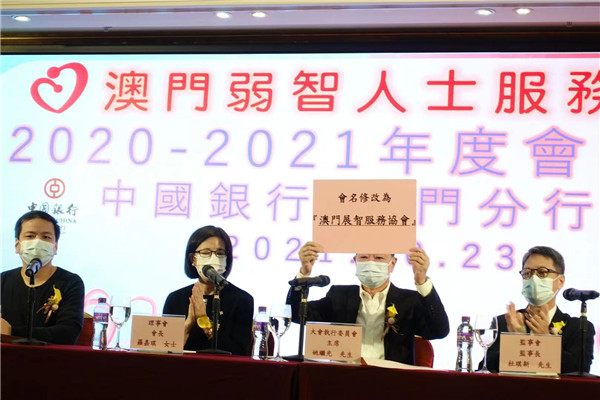 澳門弱智人士服務協會於10月23日舉行二○二○年至二○二一年度會員大會,通過修改該會會名為“澳門展智服務協會”等章程。大會執委會主席姚繼光表示,原會名已沿用三十多年,但隨着社會進步認為應更改會名,以消除社會對弱智人士的歧視和標籤,藉此提高弱智人士的社會地位。改名後會務仍維持不變,定會繼續努力提供更優質服務。