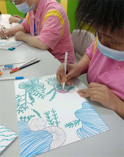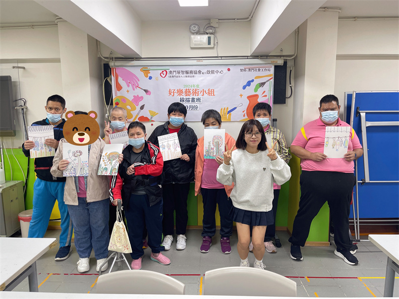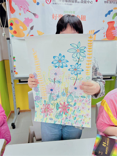 在社工局的贊助下,啟能中心於10月舉辦了線描繪畫班,在導師指導下,服務使用者根據自己喜歡的顏色,一筆一筆繪畫出不同的線條,圖案亦逐一出現在眼前,經過數堂的嘗試後服務使用者變得得心應手,大家都專心,創作出不同的漂亮作品。
