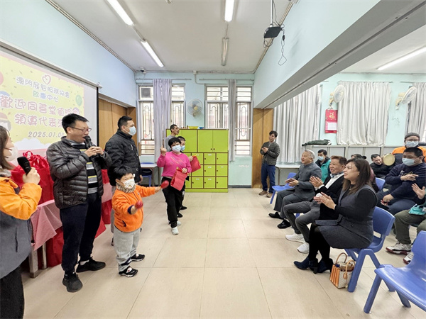 藉著新春來臨之際,同善堂值理會一眾值理成員代表包括:李傑興先生、姚繼光先生及同善堂中學校友會理事長鄭棋欣、青年會成員等在2025年1月8日下午到訪啟康中心。中心學員獻唱賀年歌歡迎各來訪嘉賓,值理會代表李傑興先生、姚繼光先生分別致辭為中心送上節日祝福與問候,活動畢並向學員們派發節日禮物包及賀年利是表關懷。