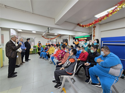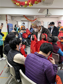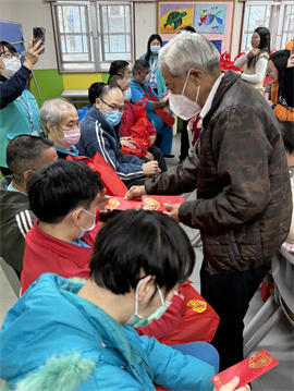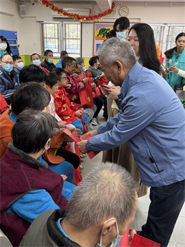 日前,同善堂到訪中心進行探訪活動,為中心服務使用者送上節日的問侯及祝福,同時向中心的服務使用者派發新春禮物包和利是,以表示對服務使用者的關愛。中心服務使用者們收到新春禮物包和利是都十分高興,感謝同善堂讓服務使用者提早感受新年的氣氛。