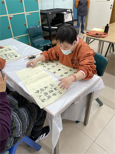 臨近新春,中心藉著星期六的興趣班讓學員簡單體驗書法的意境,了解生活中「寫字」的文化。輔助學員從生活經驗中成長,探索自己簡單直接的一面。