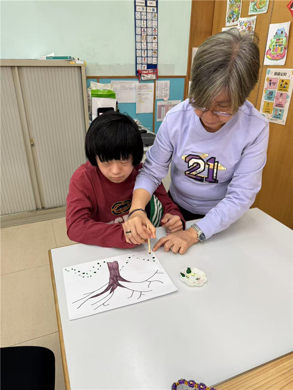 中心為學員設計一門興趣班,關於繪畫,主題為「點」。提高學員對美術活動的興趣及大膽使用與生俱來的事物作畫的能力,體驗畫筆以外的藝術快樂。