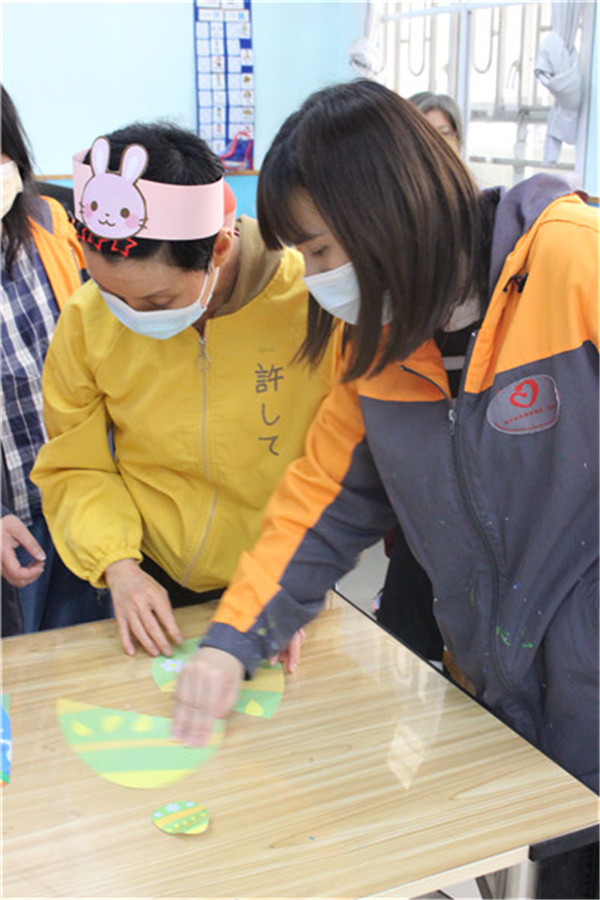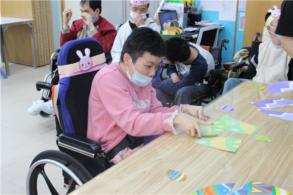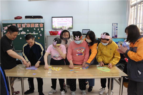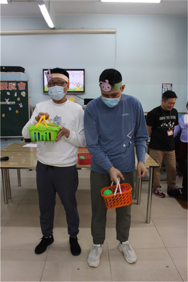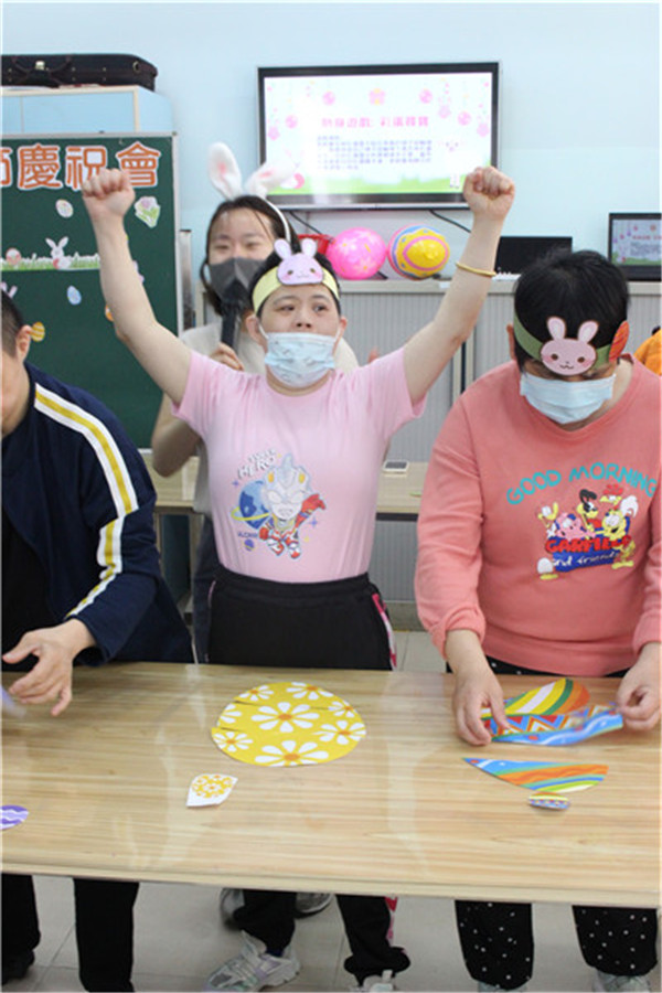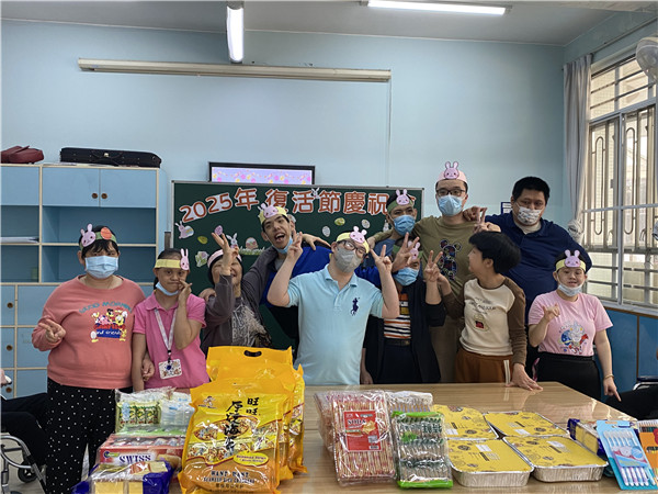 啟康中心的學員們圍坐一圈,興奮地參與「彩蛋競技」遊戲。導師將五彩繽紛的復活蛋制作成遊戲在活動室,學員們手持小籃子,開心地四處尋找。學員與夥伴合作找到復活蛋換取禮物。歡笑聲中,大家互相幫助,連行動不便的學員也在老師同伴指引下找到屬於自己的復活節驚喜,並在遊戲中感受節日氣氛。最後每人捧著滿籃彩蛋,留下溫馨的大合照,為活動畫下完美句點。