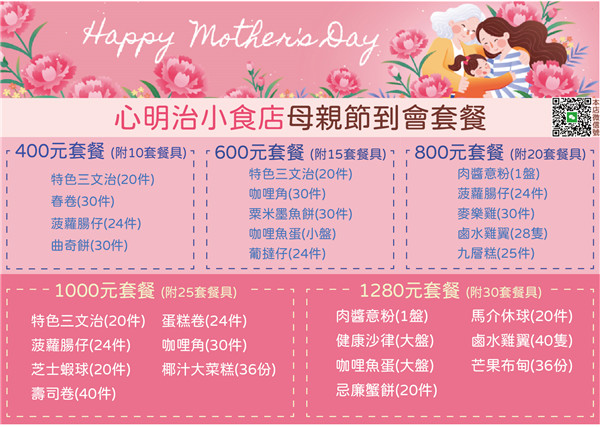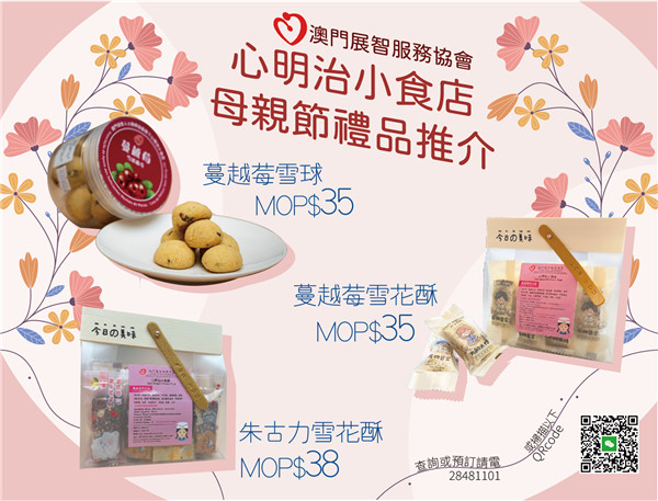 母親節,是感恩與團聚的時刻。今年,除了鮮花與禮物,何不以一場溫馨的到會盛宴,讓媽媽卸下辛勞、享受被寵愛的時光?心明治小食店推出母親節專屬到會服務,本店學員親手製作健康精緻的餐點,讓您與家人輕鬆共聚。另特別推介本店蔓越莓雪球、蔓越莓雪花酥及朱古力雪花酥,適合送禮之用,用行動支持社會共融!