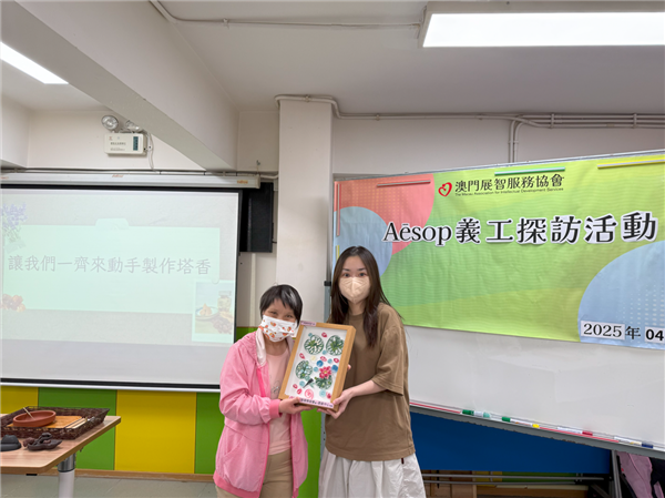 日前,Aesop組織一班義工到訪啟能中心進行探訪活動。除了認識中心,亦與服務使用者一起交流互動整作塔香。在製香過程中,大家一起調配香料、混合、製作成型。香氣使大家放鬆的同時,亦增進他們彼此社交互動,讓社區人士對特殊人士有更多的認識,構建共融友愛的社區。最後,Aesop義工更為服務使用者送上小禮物,並與一眾服務使用者拍照留念,紀錄溫馨難忘的一刻。