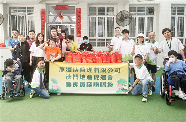 2025年5月2日,藉著睡佛寶誕來臨之際,澳門家酒店管理有限公司、澳門地產促進會與周國輝先生伉儷等聯同多位善心人士,向澳門展智服務協會屬下啟康中心及啟能中心的服務使用者家庭共捐贈100份慈善福袋,傳遞節日溫暖與社會關懷。值得特別一提的是,該公司及社團已連續多年向本會捐贈福袋,這份持之以恆的善心令人倍感溫暖。