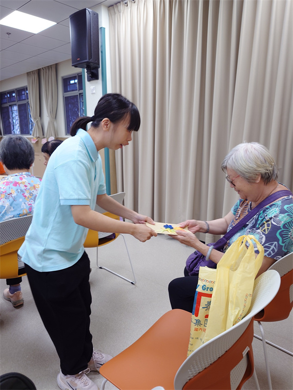 是次探訪活動中,學員義工不但透過事前培訓,學習溝通技巧及與長者相處時的注意事項,更利用輕黏土及衍紙親手製作母親節心意卡。