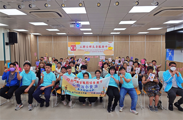 澳門展智服務協會屬下心明治小食店於母親節前夕舉辦“義工探訪”活動,組織學員義工到訪工聯台暉長者服務中心,用精彩的表演、親手製作的禮物,為長者們送上母親節的溫暖祝福。