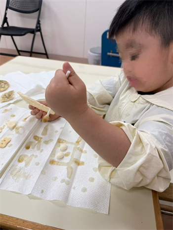 圖二:治療師提供不同形狀的餅乾,讓幼兒通過砌機器人去增加進食不同餅乾的興趣。