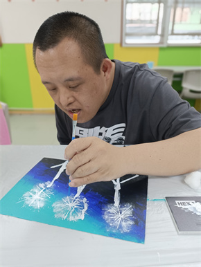 最後一節課上,導師特意引入咖啡豆作為創作媒介,用獨特質感點綴畫面,為課堂增添了不少樂趣。新奇的創作體驗讓服務使用者們倍感興奮,大家對整個畫班的學習效果都倍感興趣。