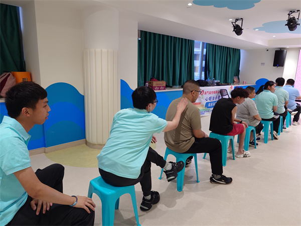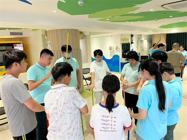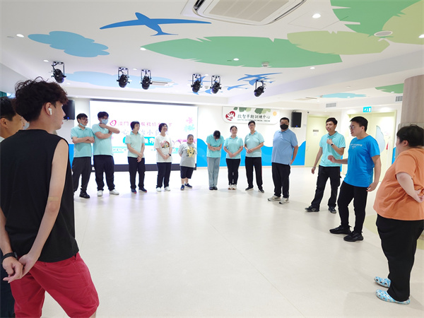 澳門展智服務協會屬下心明治小食店於八月三十日在該會屬下啟智早期訓練中心舉行“溝通無界限”活動,組織學員開展低結構歷奇活動,讓新舊學員互相認識,學習溝通技巧及突破自我、提升團隊合作精神。活動由社工局贊助。