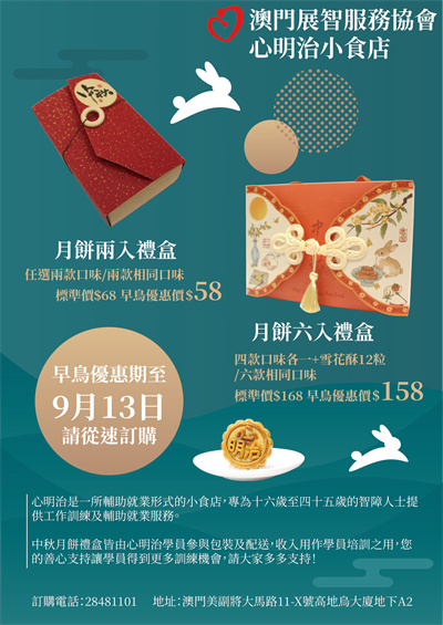 心明治小食店中秋月餅禮盒,共有四款口味,分別是蛋黃蓮蓉、蛋黃豆沙、蛋黃班蘭及蛋黃陳皮豆沙四款迷你月餅,多種款式供大家選擇,有兩入、四入、六入,也有雪花酥月餅禮盒供選擇。訂購反應熱烈將延續早鳥優惠,感謝大家的支持!