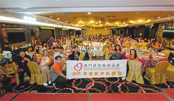 澳門展智服務協會日前假萬豪軒酒家舉辦“學員慶中秋聯歡活動”,活動匯聚百多名成年智障學員及該會理事參與,溫馨共融慶中秋 ,活動得到澳門基金會贊助。