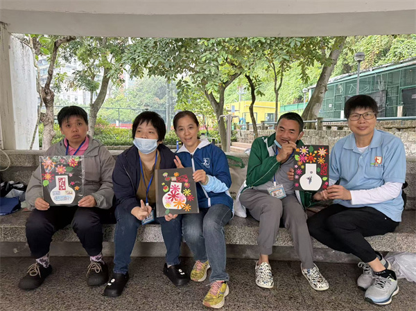 為迎接傳統重陽節,啟能中心聯同澳門義務青年會,共同組織服務使用者及社區義工舉行戶外登高活動。參與者齊聚松山,登高望遠,感受節日氛圍。大家沿途欣賞風景,呼吸清新空氣,隨後服務使用者與義工分成小組,進行互動小遊戲,包括肢體協調挑戰、傳球接力及趣味收集物品,現場笑聲連連,參與者全情投入,促進跨代交流與團隊精神。壓軸環節為菊花花瓶DIY工作坊,義工耐心指導服務使用者親手製作精美花瓶畫作,以菊花寓意長壽與敬老。大家邊創作邊閒聊,分享生活點滴,活動在溫馨融洽的氣氛中圓滿結束。