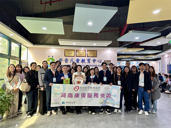 澳門展智服務協會為進一步推動同工了解國家發展成就,拓展認識內地康復服務,並加強兩地人員間的聯繫與合作,日前組織一行二十六人赴湖南開展“湖南康復服務交流”活動。由澳門基金會贊助。交流團由中聯辦社工部副處長劉盾擔任隨團顧問,常務副會長馬騰擔任團長。參與成員包括啟智早期訓練中心、啟能中心、啟康中心及心明治小食店的同工。