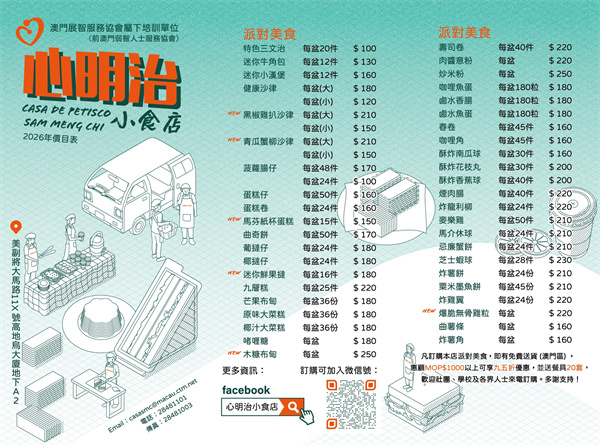 心明治小食店由2月1日開始更新2026年新餐單,歡迎致電28481101或加入微信號聯絡及訂購。