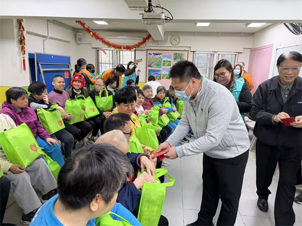 新春將至,暖意先臨。早前,同善堂一眾值理到訪中心進行探訪活動,為中心服務使用者送上節日的問侯及祝福,同時派發新春禮物包和利是,以表示對服務使用者的關愛。中心服務使用者們收到新春禮物包和利是都十分高興,感謝同善堂的暖心舉動,讓服務使用者提前感受新年的氣氛。