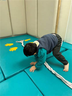 實證原理:此活動在安全環境下提供線性前庭覺輸入,並挑戰孩子的姿勢調整反應,能促進前庭系統與姿勢肌群的協同工作效能。
