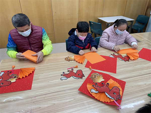 導師及助教進行小組手工指導,將簡單的手工材料組合成具祝福意念的手工作品,讓學員在成功中建立自信,享受一同制作的喜悅,為學員增添新春暖意。
