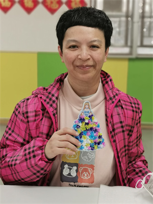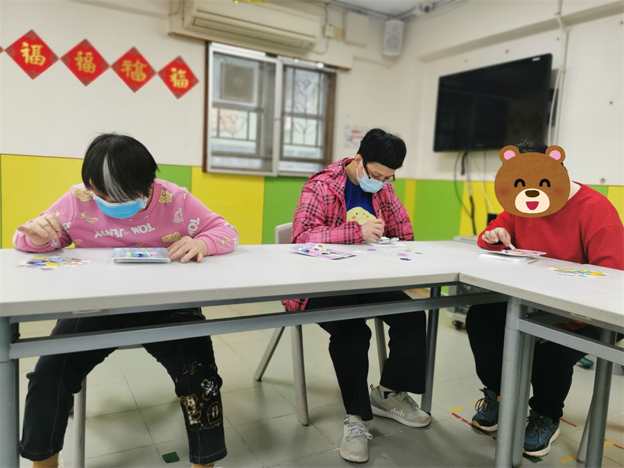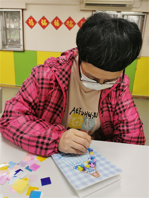 在課堂上導師讓服務使用者揀選衣服布料,自由發揮創意為公仔搭配色彩與造型,培養美感及色彩搭配。其後,大家使用戳戳筆將布料戳進圖案孔洞中,一針一針專注地完成作品,既能鍛煉小手肌及專注力,又能體驗手作的成就感。整個過程輕鬆愉快,充滿歡笑與創意。