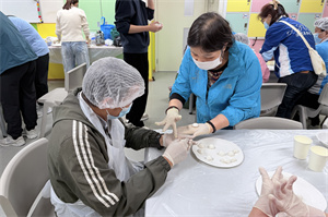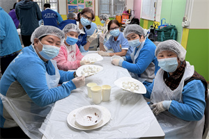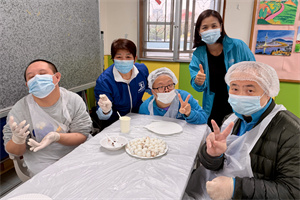元宵佳節來臨之際,中心聯同澳門義務青年會,共同組織服務使用者與社區義工一同製作傳統豆沙湯圓。大家齊心協力揉粉團、包豆沙餡、最後搓成湯圓,過程中不僅提升學員社交溝通能力,更在互動中學習相互接納與尊重彼此差異,促進交流與社區共融。現場氣氛溫馨熱鬧,服務使用者與社區義工耐心製作湯圓,製成的湯圓由工作人員煮熟後加入薑片與片糖,熬成暖心的豆沙湯圓。等待期間,社區義工帶領學員猜元宵燈謎,答對獲得小禮物,拉近彼此距離。