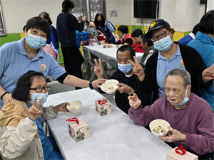服務使用者品嚐親手製作的豆沙湯圓時,臉上洋溢喜悅。活動結束後,中心亦將剩餘的豆沙湯圓分送未有參與的服務使用者,共享節日溫暖。