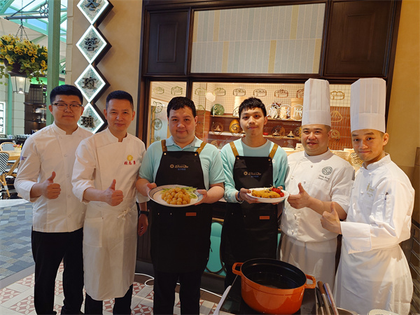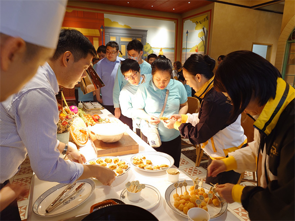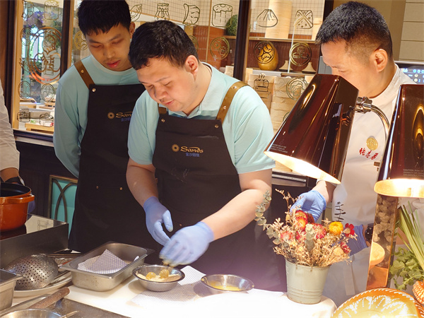 金沙中國誠邀心明治小食店學員前往澳門倫敦人,參加閩菜與澳葡菜文化交流活動。活動中,兩位泉州師傅示範「東壁龍珠」,學員們全神貫注學習每一個步驟,師傅更熱情邀請學員參與釀餡料與裹粉,從中體驗星級美食製作樂趣,參與學員都感到很榮幸及開心。