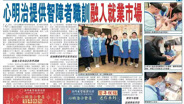 「心明治」小食店隸屬澳門展智服務協會,是本澳首間智障人士輔助就業機構。小食店2002年12月19日開業,除了是小食店,更是提供智障人士輔助就業的服務中心,讓他們透過實際工作發揮潛能,為投入就業市場做好準備,累計「心明治」已協助100位學員在就業市場找到立足之地。