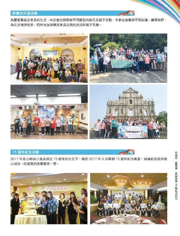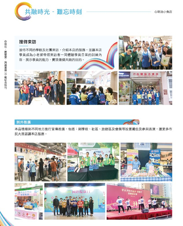 心明治小食店隸屬於 澳門展智服務協會(前澳門弱智人士服務協會),由社會工作局資助,於二零零二年十二 月十九日正式開業,專為十六至四十五歲智障人士提供輔助就業訓練,透過實際工作使其發揮潛能,融入社會。