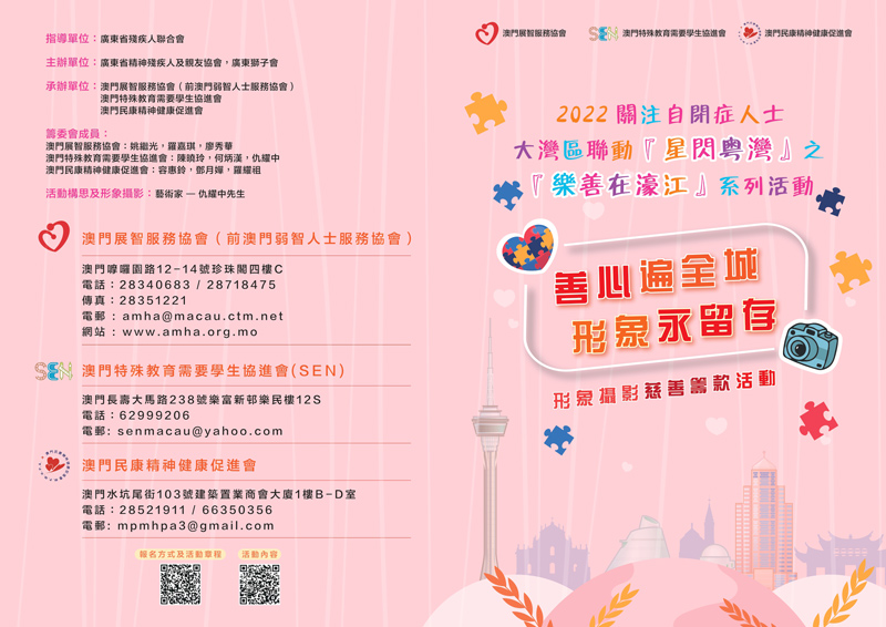 3.承辦單位:澳門展智服務協會(前澳門弱智人士服務協會),澳門特殊教育需要學生協進會,澳門民康精神健康促進會