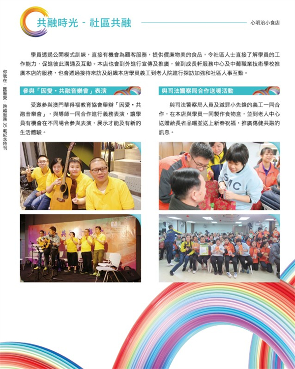 心明治小食店隸屬於 澳門展智服務協會(前澳門弱智人士服務協會),由社會工作局資助,於二零零二年十二 月十九日正式開業,專為十六至四十五歲智障人士提供輔助就業訓練,透過實際工作使其發揮潛能,融入社會。