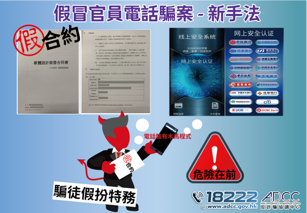 > 真正的執法人員在調查案件時,不會透過電話對話索取銀行帳戶及密碼,亦不會要求保證金作資產審查;