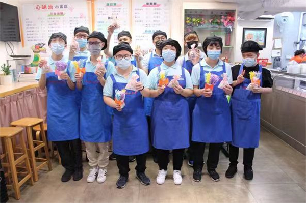 心明治小食店隸屬於 澳門展智服務協會(前澳門弱智人士服務協會),由社會工作局資助,於二零零二年十二 月十九日正式開業,專為十六至四十五歲智障人士提供輔助就業訓練,透過實際工作使其發揮潛能,融入社會。