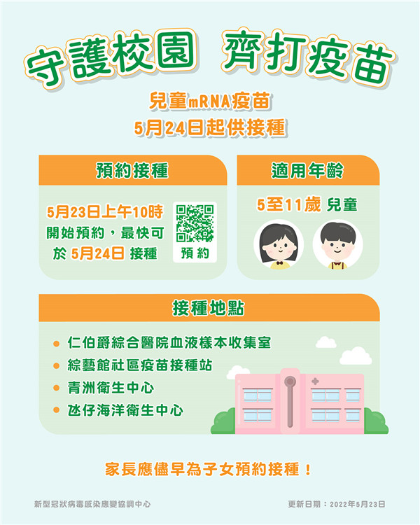 如欲為子女接種mRNA新冠疫苗兒童劑型,可掃描圖文包內的二維碼進行預約接種。
