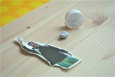 2. 按個人喜好,把相片或雜紙人像圖貼在樽蓋面。