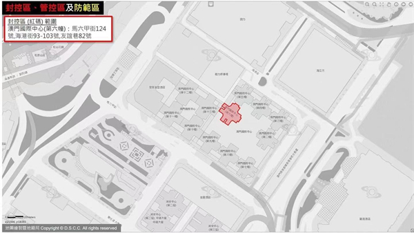澳門國際中心(第六幢)︰馬六甲街124號,海港街93-103號,友誼巷82號;